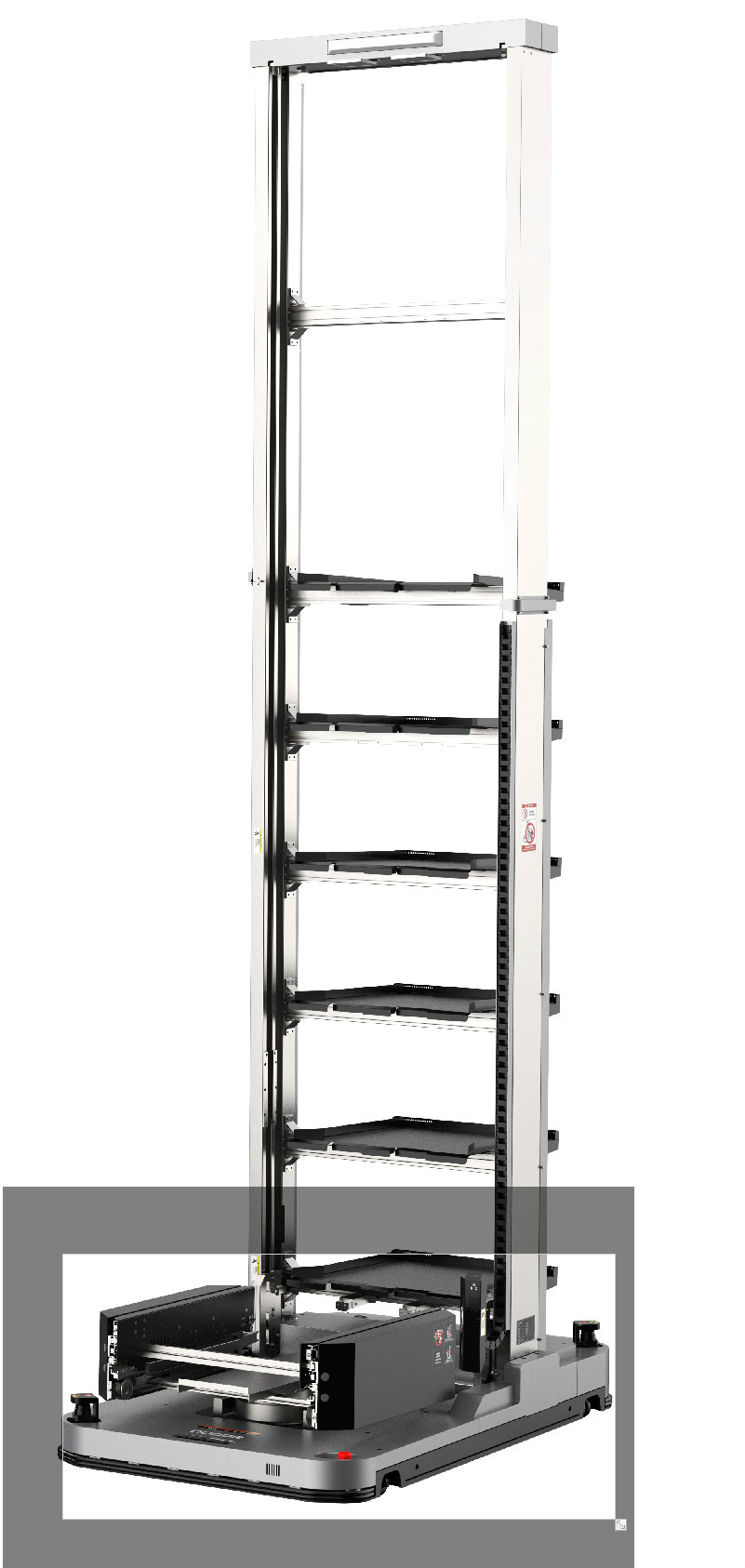車身低矮,可以進(jìn)入低矮的料架地下牽引。潛伏牽引并且雙向運(yùn)行可以使轉(zhuǎn)彎半徑縮小,占地面積小。 驅(qū)動單元一鍵電動升降方便維護(hù)。最多可以指定1024個(gè)站點(diǎn)。 激光傳感器安全防護(hù)到位